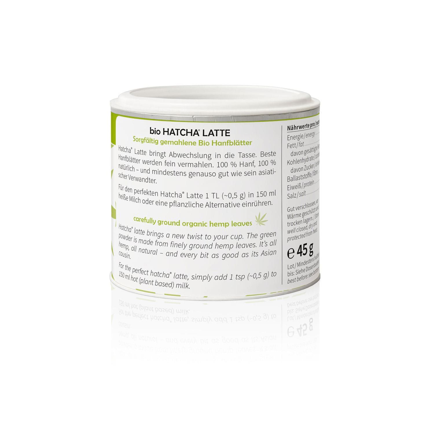HATCHA® Latte sorgt für Abwechslung in der Tasse. Die besten Blätter der Hanfpflanze werden fein vermahlen. 100 % Hanf, 100 % naturbelassen – und mindestens genauso deliziös wie sein asiatischer Verwandter.