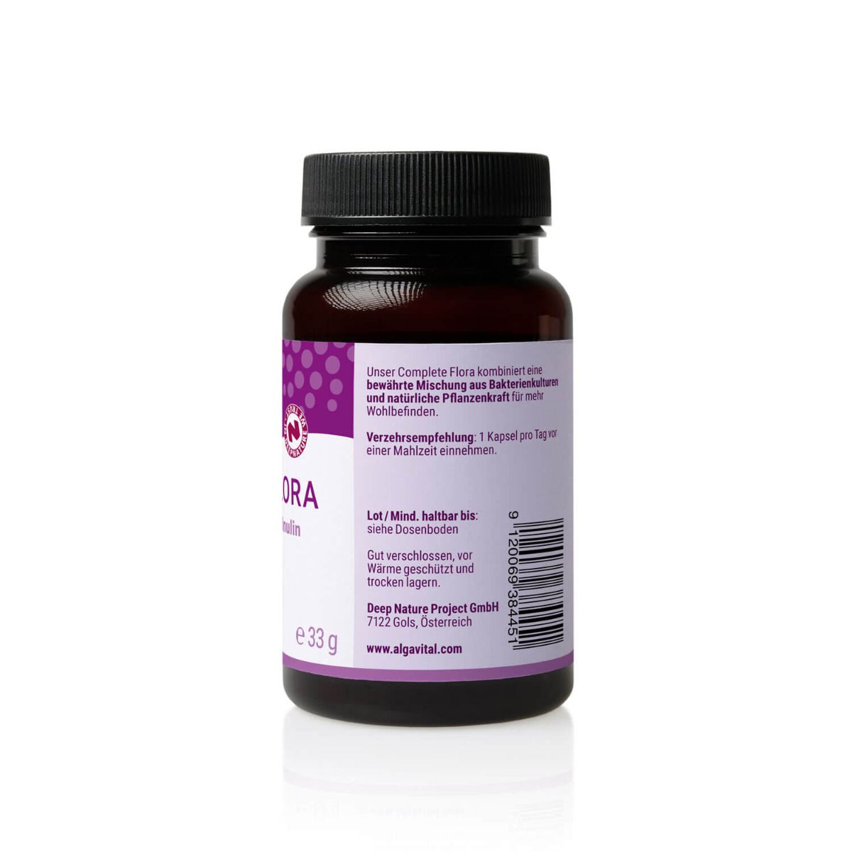 Complete Flora ist eine probiotische Mischung für die Flora im Darm, bestehend aus 14 temperaturstabilen und milchfreien Bakterienstämmen in kleinen vegetarischen Kapseln (V-caps). Das Besondere an dieser Darmbakterien-Mixtur ist die Kombination mit Topinambur und Inulin.Bestimmte Pflanzen, wie Pastinaken oder Topinambur lagern in ihren Knollen und Wurzeln Inulin ein. Es setzt sich aus komplexen Fructoseverbindungen zusammen und ist ein Saccharid, in dem die Pflanzen Energie speichern. Nimmst du beispielsweise Topinambur zu dir, gelangt das Inulin so gut wie unverdaut durch den Magen und Dünndarm. Unser Stoffwechsel besitzt keinen Biokatalysator für die Verdauung (Enzym), um die Energie der Pflanze im Inulin zu verstoffwechseln. Erst im Dickdarm können Darmbakterien die Fructose im Inulin verwerten. Die Knolle der Topinambur selbst kann roh und gekocht verspeist werden, sogar die Schale ist im Grunde essbar. Ihr leichter Nussgeschmack kommt ganz besonders in gekochtem oder geröstetem Zustand zur Geltung und wird durch eine Kombination mit Meerrettich, Senf oder Muskat noch verstärkt.